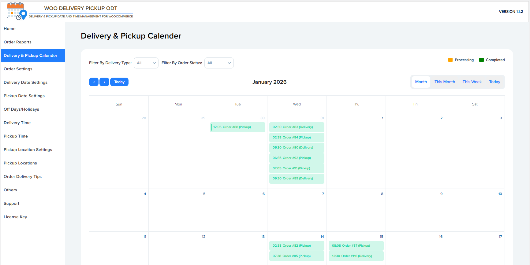- Filters calendar entries based on order type.