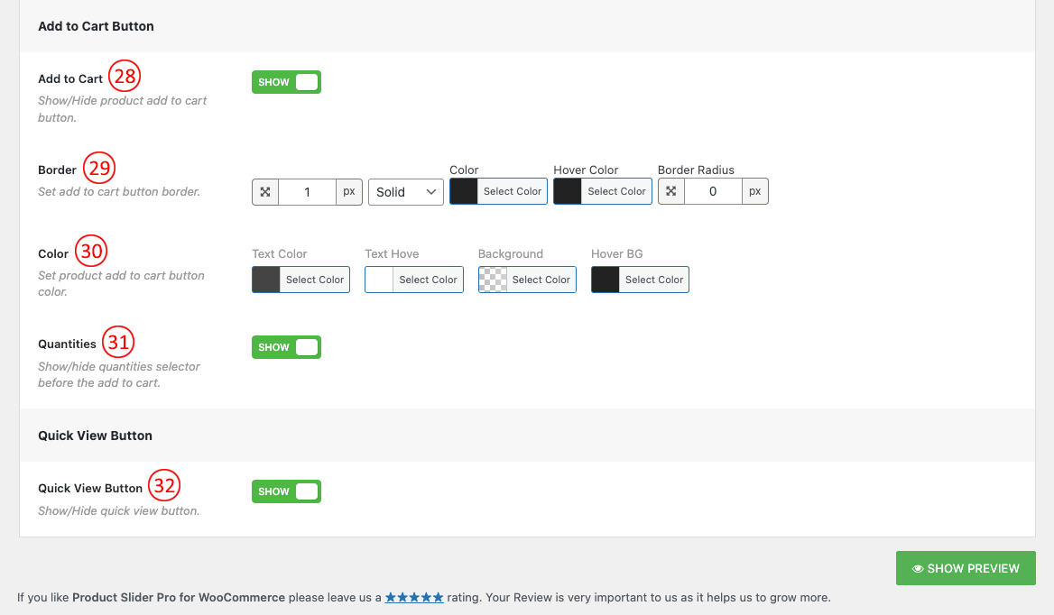 (28) Add to Cart: This option is used to Show/Hide Add to Cart Button. Users can control this option by Switching it ON and OFF.