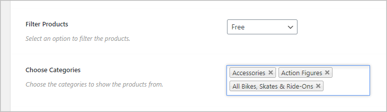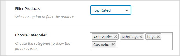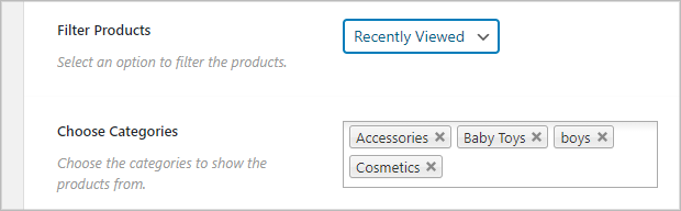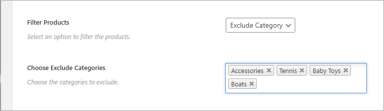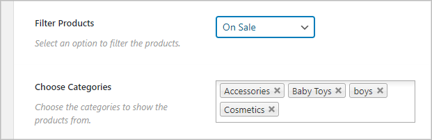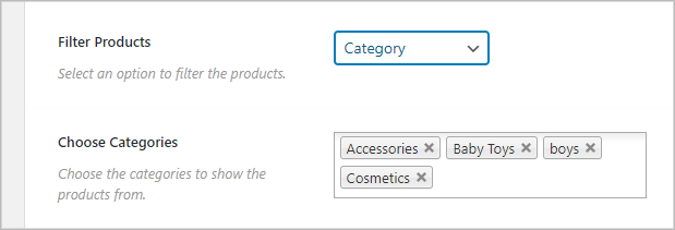 (2) Choose Category: This option will appear based on your Filter type selection. You can specify the product/category/tag name in this field.