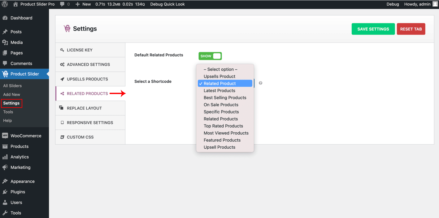 • Select The Product Slider Title you have created from Select Related Product Shortcode and save Changes.