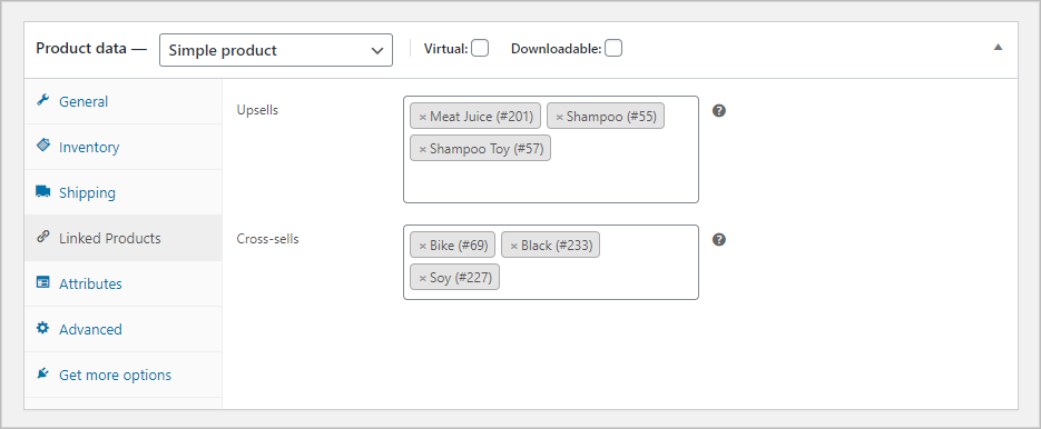 (viii) Cross-sells: Cross-sells are products that you promote in the cart, based on the current product.