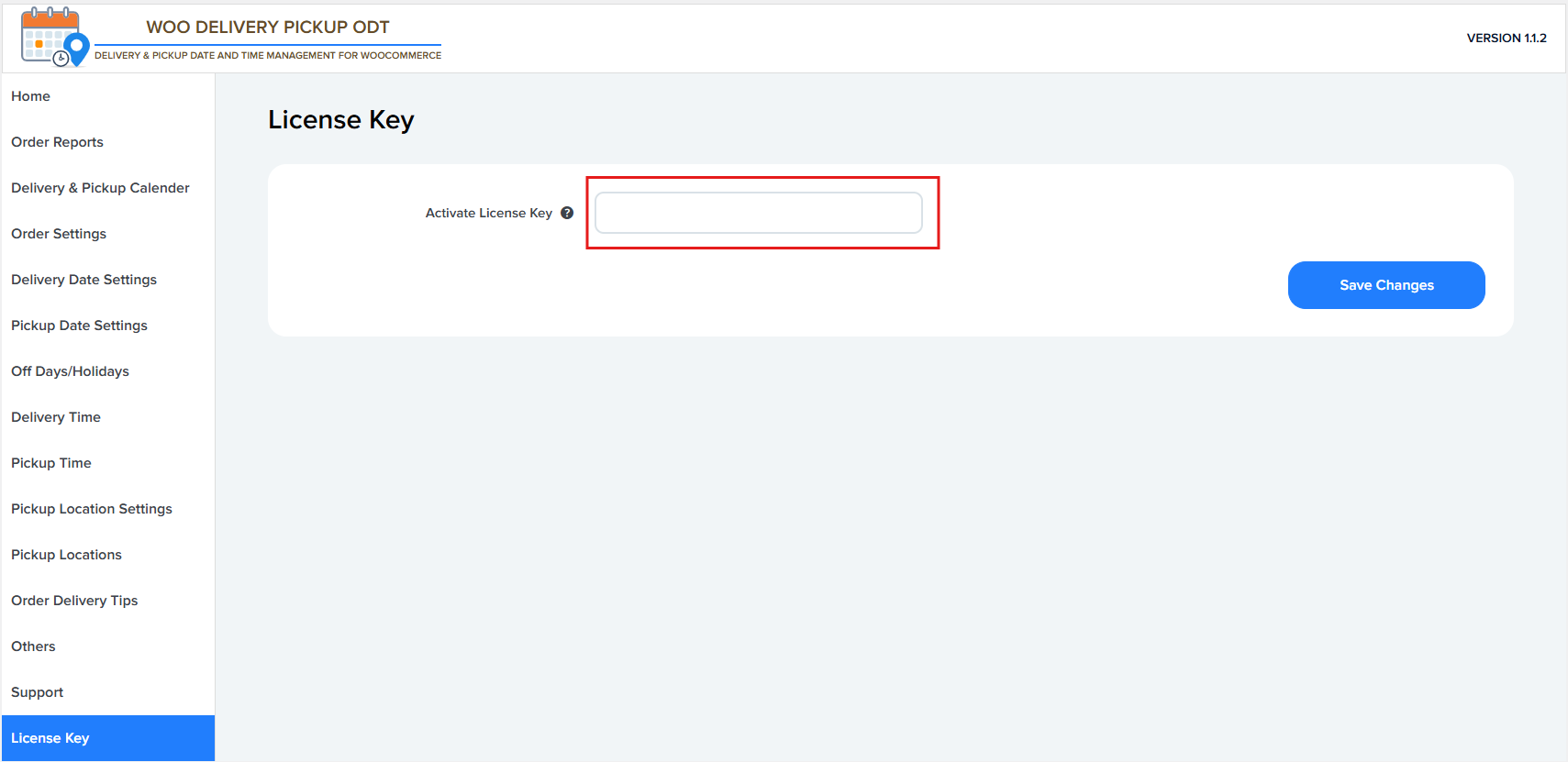 (a) Go to your plugin website > Woo Delivery Pickup OTD > License key tab. You are seeing the following image