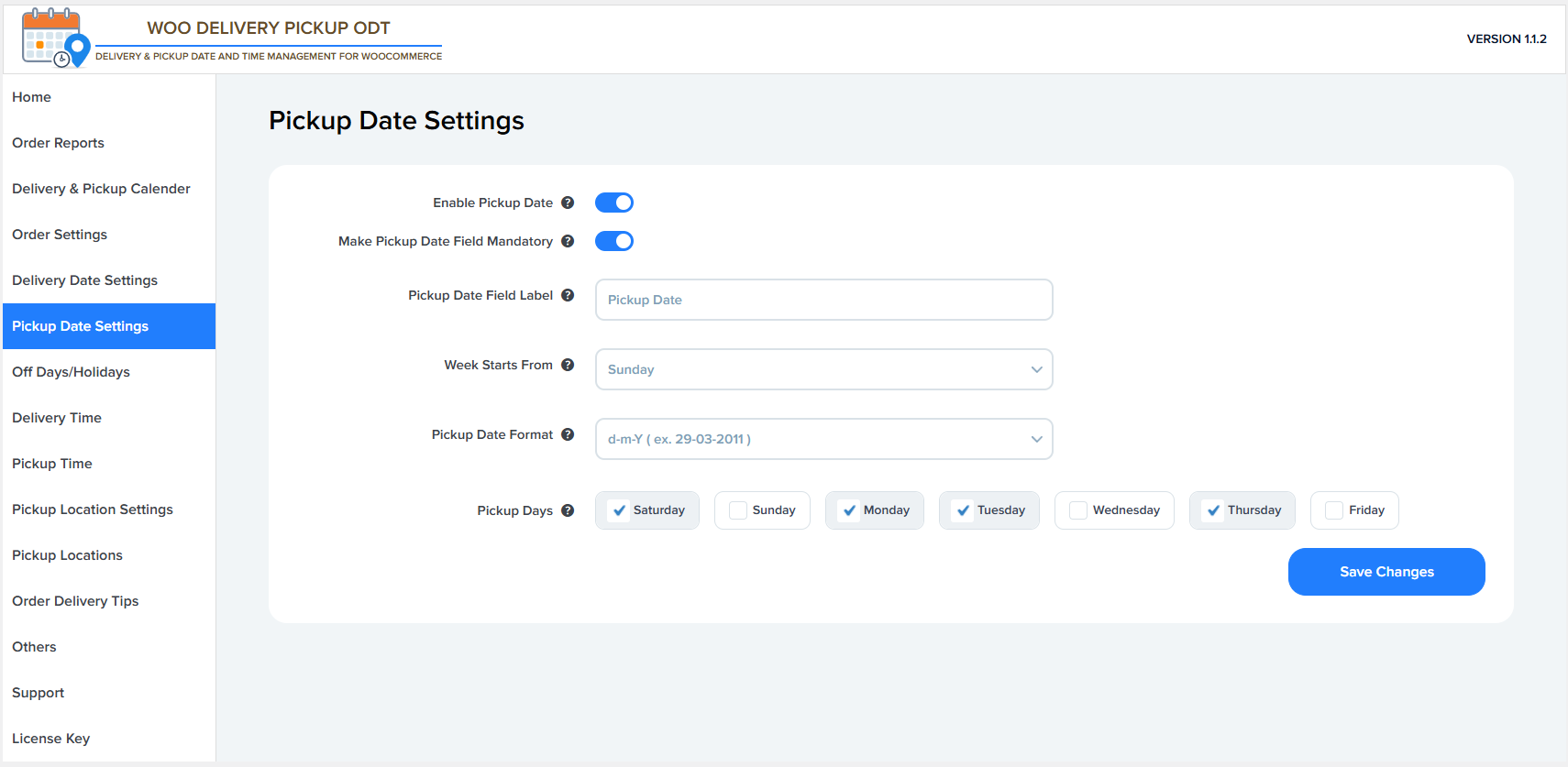 Click this button to save all pickup date settings and apply them to the checkout page.