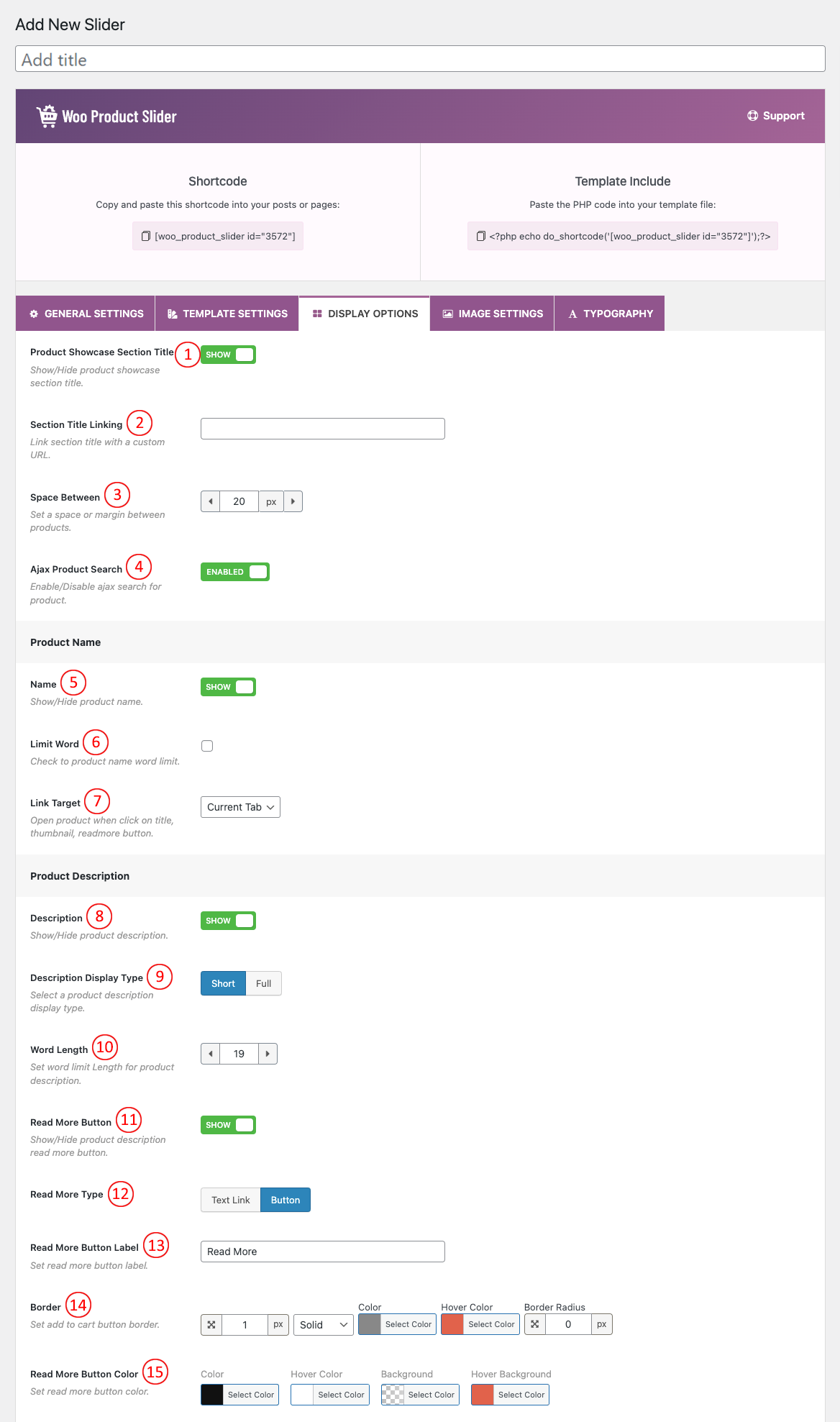 (1) Image: You can Show/Hide the Product image by selecting SHOWand HIDEfrom this option.