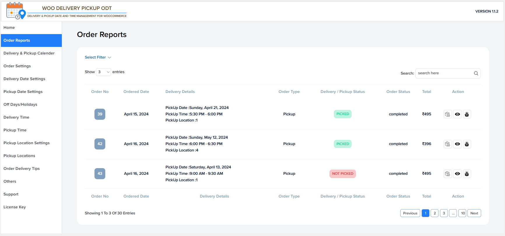 - Allows you to filter orders based on delivery or pickup conditions.