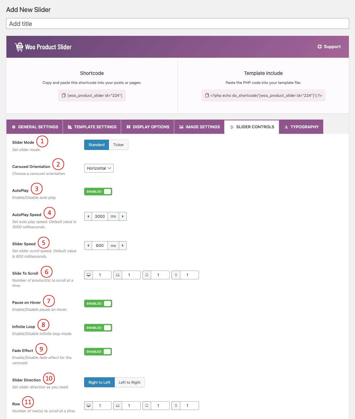 (3) AutoPlay: AutoPlay Attribute is utilized to determine that the Product Slider ought to automatically begin playing when the web page is loaded. With this feature, you can switch ON/OFF AutoPlay.