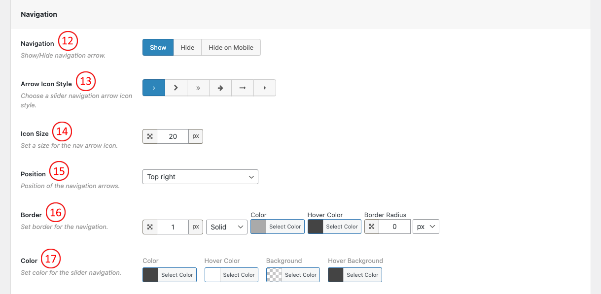 (15) Position: Select a Position for the Navigation Arrows. Available Options are: