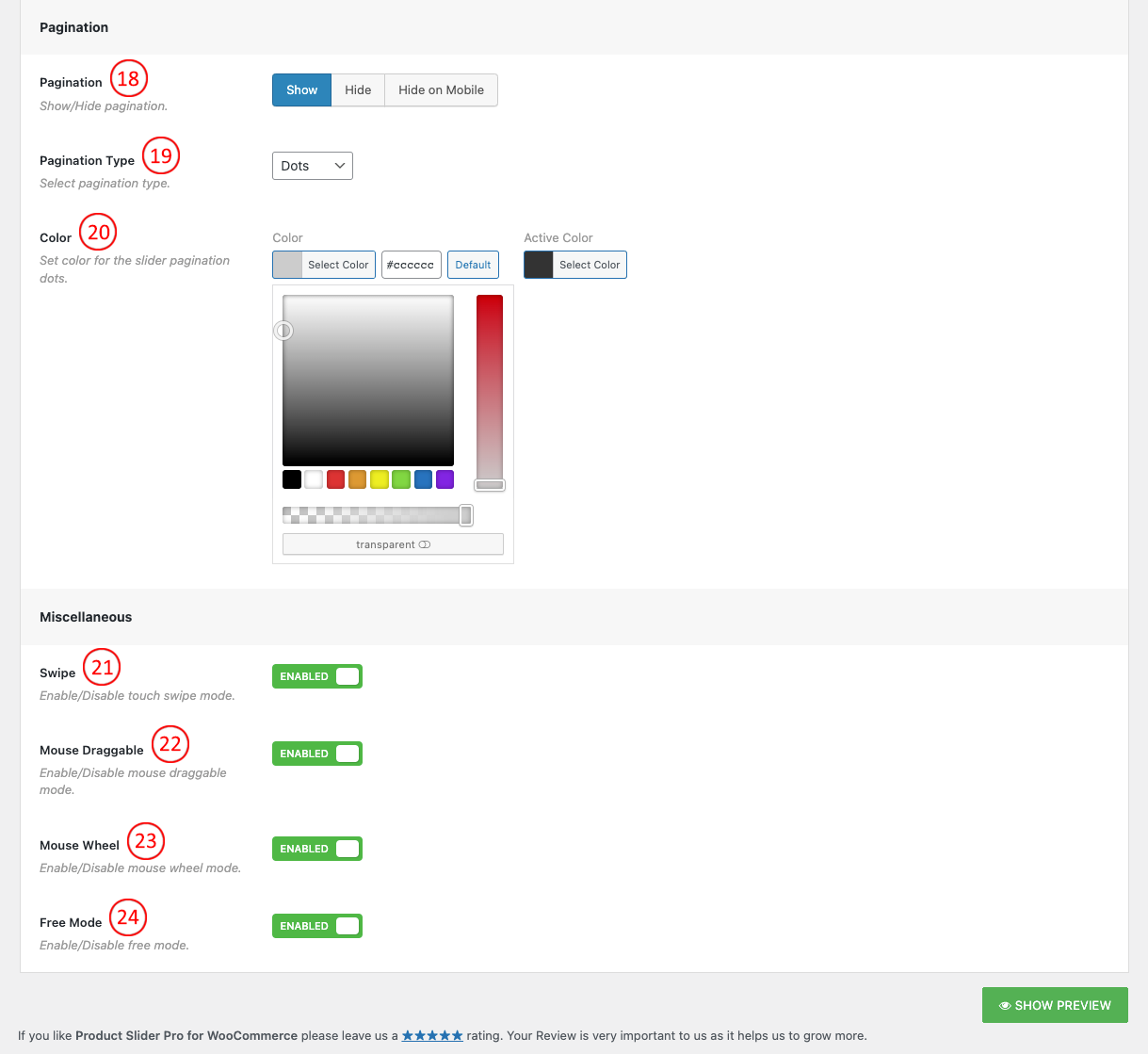 (20) Color: If you select the pagination type as Dots, you can set Dot’s color as you wish.